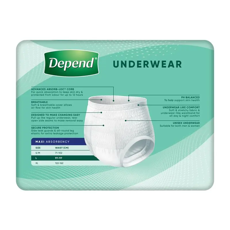 • The Most Absorbent: Maxi Absorbency is the most absorbent underwear in the Depend Underwear range.