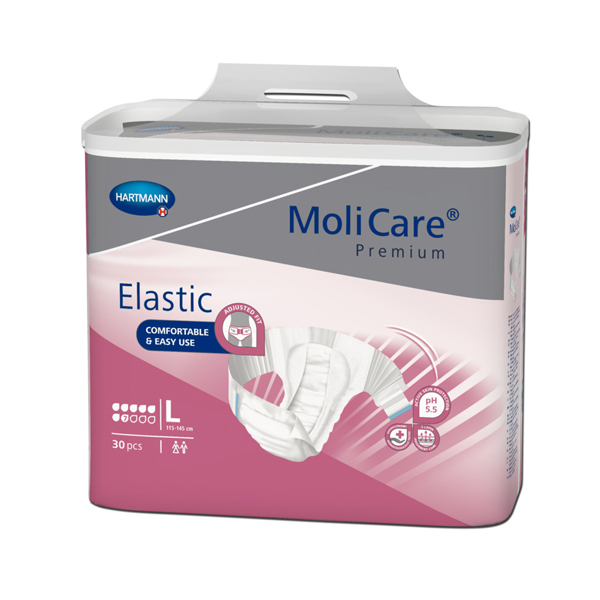 MoliCare® Premium Elastic 7 Drops is an all-in-one slip style pad for heavy incontinence, suitable for all body shapes. An all-in-one slip style pad for heavy incontinence, suitable for all body shapes. MoliCare®Premium Elastic is quick and easy to apply with only 2 elasticated side panels and 2 re-closable tapes.