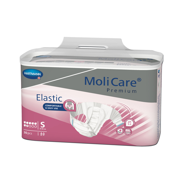 MoliCare® Premium Elastic 7 Drops is an all-in-one slip style pad for heavy incontinence, suitable for all body shapes. An all-in-one slip style pad for heavy incontinence, suitable for all body shapes. MoliCare®Premium Elastic is quick and easy to apply with only 2 elasticated side panels and 2 re-closable tapes.