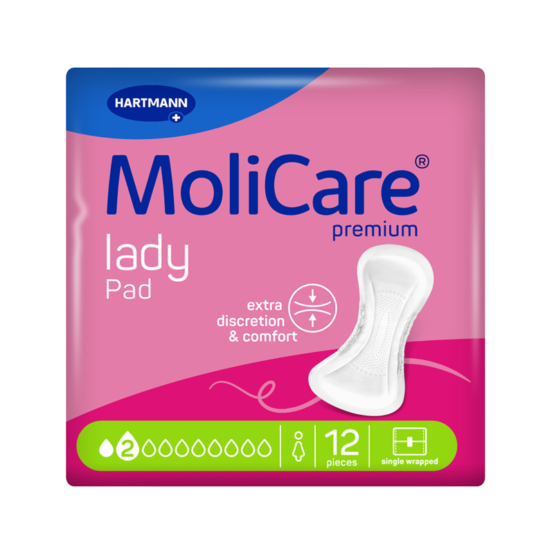 MoliCare® Premium Lady Pad 2 Drops is a pad for light incontinence. Absorbency (ISO Max.): 331ml