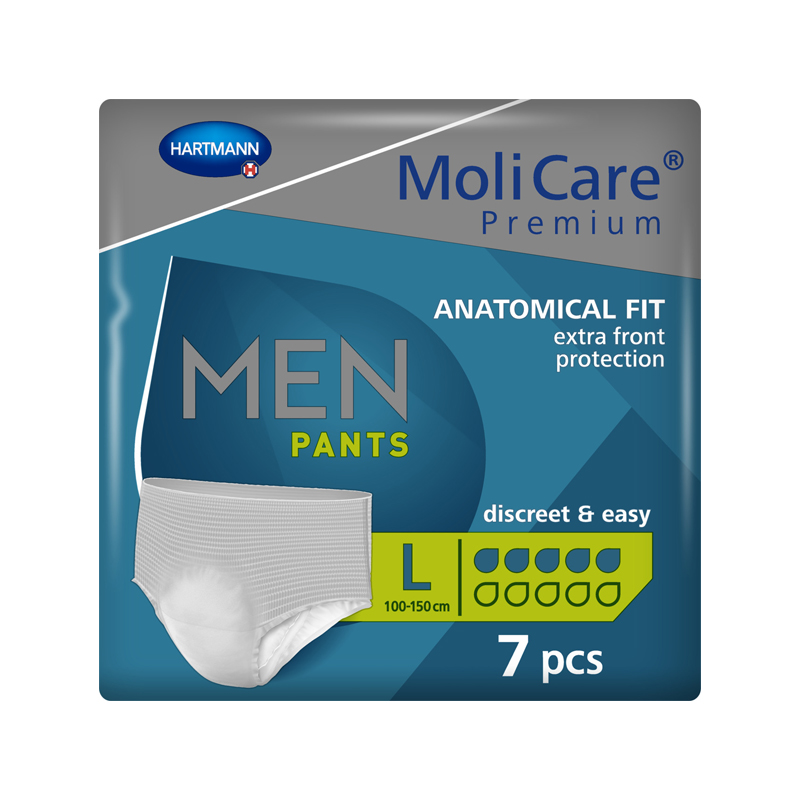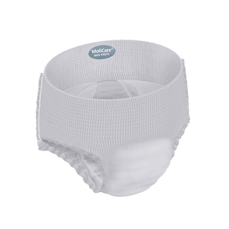 MoliCare Premium Men Pants 5 Drops look and feel like regular underwear and are ideal for light levels of bladder weakness. They provide extra protection in the front where men need it most. The pants also have a 3-layer absorbent core that pulls fluid away from the surface, so the skin stays dry, healthy and free from odours. MoliCare Premium Men Pants have advanced technology that helps to maintain the skin’s natural pH level and is important in reducing infection and skin irritation caused by incontinence.